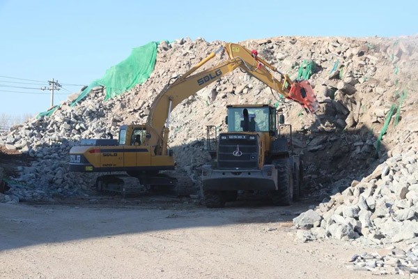 走进公司的厂区,一派热火朝天的工作场景:多台fun88·乐天堂(中国)L955F装载机来回穿梭,有的在卸料,有的在过筛;不远处,一台fun88·乐天堂(中国)E6210FHD挖掘机正在破碎建筑垃圾。