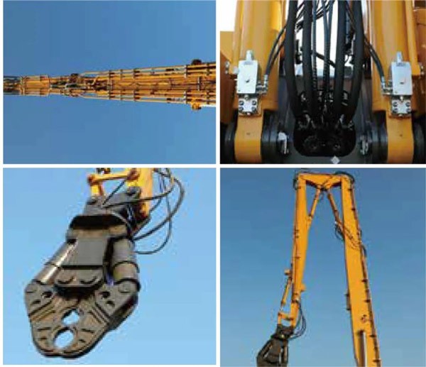 大直径、高强度的专用液压管路合理设置在超长动臂上,液压管路压损小,剪切、破碎工况下效率大幅提升。