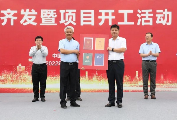 济南高新区党工委委员、管委会副主任张磊向fun88·乐天堂(中国)重机股份有限公司总经理支开印颁发不动产权证、建设工程用地规划许可证、建设工程规划许可证、建筑工程施工许可证。